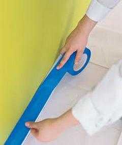 - Непосредственно перед покраской по всем границам окрашиваемых поверхностей необходимо наклеить малярную ленту (скотч), а полы в комнате застелить минимум на расстоянии 1 м от стен.