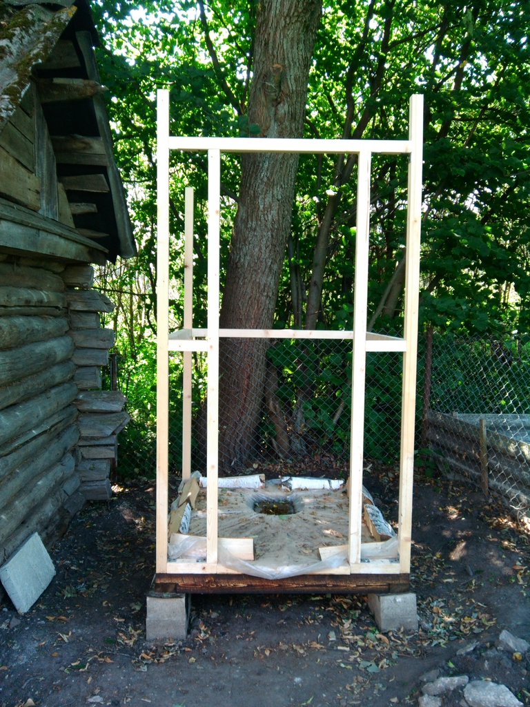 В прошлом году передо мной возникла задача заменить практически всю канализационную систему, соединяющую санузел частного дома с септиком. По причине того, что объём работ предстоял быть большим (необходимо было выкопать трубы, находящиеся на существенной глубине, изменить конфигурацию системы, добавить фановый стояк, которого раньше не было), некоторое время пользование сливной системной в доме стало невозможным. Старый уличный туалет, не бывший в эксплуатации уже несколько десятков лет, за это время пришел в негодность, поэтому я решил перед началом запланированных мной работ построить новый туалет, куда могла бы ходить моя семья, пока канализация будет в нерабочем состоянии.