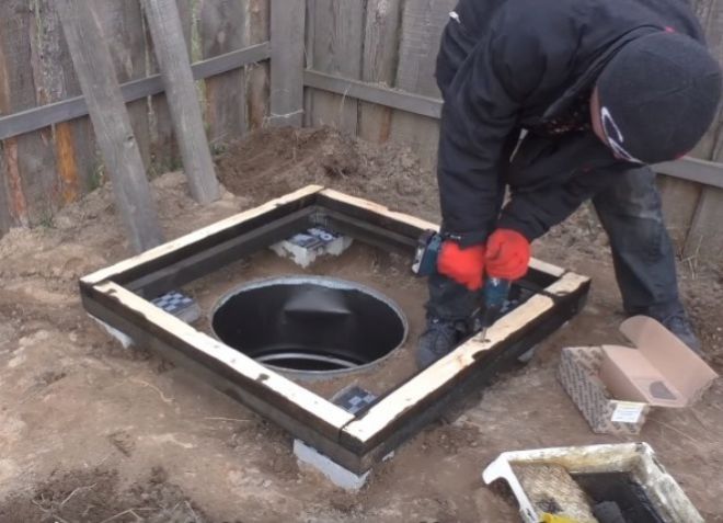 - Копка ямы глубиной не менее 1,5 метра или подготовка места под септик.