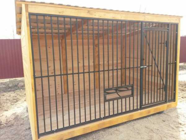 Самым распространенным считается вариант с глухими стенами. Своими руками вольер сооружают из металла, другого, обязательно крепкого материала. Прутья из металла выступают стеной открытого типа. Естественно, должен быть отдельный вход с дверью, будка для отдыха. Настил изготавливается из надежных и долговечных материалов. Представьте, что вы строите жилье для овчарки – одной или даже двух. Следовательно, подстилку нужно делать из бетона, асфальта, стяжки цемента.