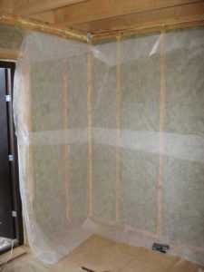 - Когда выполняется утепление стен изнутри. Особенно если в ходе работ по теплоизоляции были использованы материалы ватного типа. Прекрасными характеристиками в плане теплоизоляции обладает стекловата и плиты из минерального волокна. Вдобавок к этому им присуща способность «дышать». Но характерен для них один серьезный недостаток. Он состоит в том, что эти материалы имеют слабую стойкость к воздействию влаги. Проникая внутрь этих утеплителей, она снижает их эксплуатационные характеристики. А это, естественно, отражается и на эффективности утепления. Устройство пароизоляции помогает избежать этих негативных последствий;