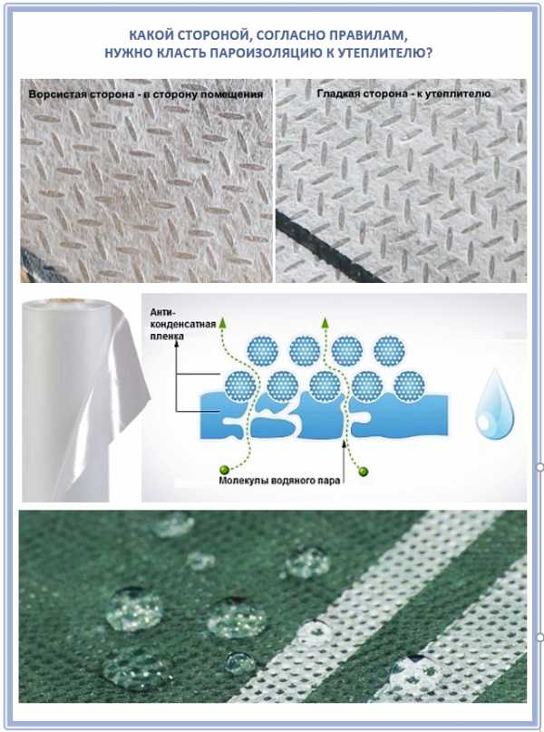 Основной вопрос, который может возникнуть у частного строителя, какой стороной укладывать данный материал к утеплителю решается очень просто: полиэтиленовая плёнка может быть обращена к утеплителю абсолютно любой стороной.
