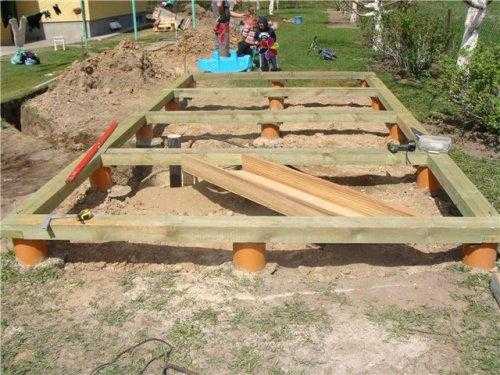 В некоторых случаях, наоборот, экономят на всем, в том числе и на опоре. Каркас собирают на чем придется. Такая постройка начнет отсыревать в первый же сезон! Но разрешено делать такие фундаменты под каркас: