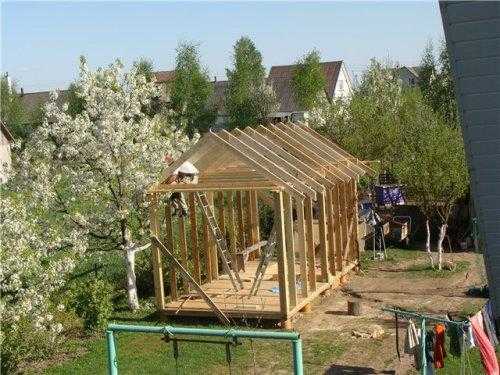 под кровлю, т.е односкатное, заключающееся в установке основания из брусьев толщиной в 10х10 мм, соединении каркаса и укладке стропил, обшивке боковых фрагментов и фасадной части каркаса слоем теплоизоляционного материала;