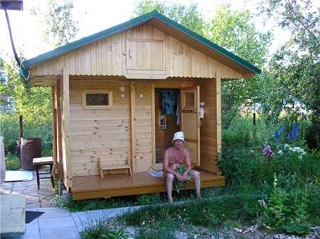 Будет лучше, если банный домик будет скрыт от посторонних, можно расположить его в глубине участка, или хотя-бы подальше от забора.