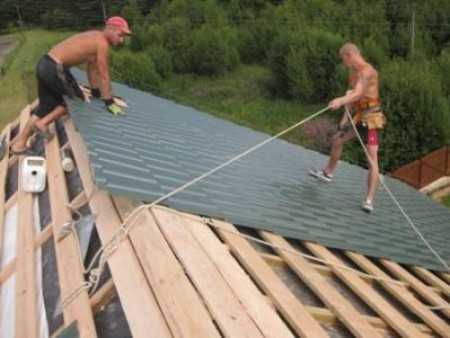 Крыша бани ничем не отличается от крыши любого сооружения, она состоит из стропил, укрепленной на них обрешетки и кровельного материала. Стропила могут быть наклонными или висячими, обрешетку, в зависимости от используемого кровельного материала можно делать сплошной или разреженной, в качестве кровельного слоя используются листовые, штучные или рулонные материалы.