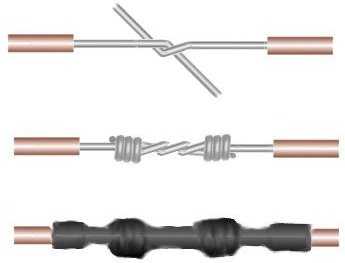 После скрутки обычно делается пайка или сварка. Согласно нормативам, простая скрутка запрещена.