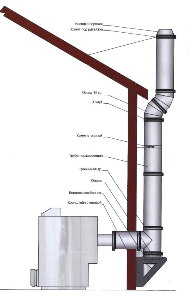 В этом случае схема дымохода может выглядеть так, как показано на изображении ниже: