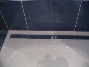 Рассмотрим, как приклеить плинтус на ванну, если он выполнен из керамики, а стена уже отделана плиткой. Сделать нужно следующее: