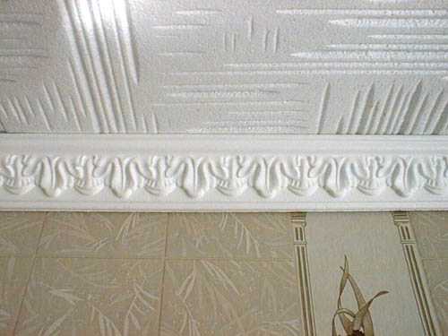 Зачастую применяют такие потолочные плинтуса для ванны, как: