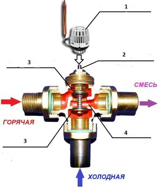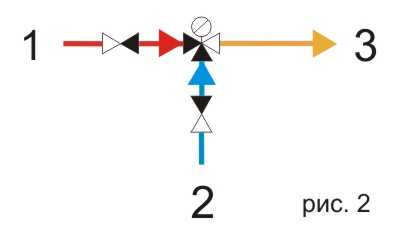 Π’Π΅ΡΠΌΠΎΡΡΠ°ΡΠΈΡΠ΅ΡΠΊΠΈΠΉ ΡΠΌΠ΅ΡΠΈΡΠ΅Π»ΡΠ½ΡΠΉ ΠΊΠ»Π°ΠΏΠ°Π½ ΠΎΠ±Π΅ΡΠΏΠ΅ΡΠΈΠ²Π°Π΅Ρ ΡΠΌΠ΅ΡΠΈΠ²Π°Π½ΠΈΠ΅ Π΄Π²ΡΡ ΠΏΠΎΡΠΎΠΊΠΎΠ² ΡΠ°Π·Π½ΠΎΠΉ ΡΠ΅ΠΌΠΏΠ΅ΡΠ°ΡΡΡΡ Π² ΠΎΠ΄ΠΈΠ½. ΠΠ½ ΠΈΠΌΠ΅Π΅Ρ ΡΡΠΈ Ρ ΠΎΠ΄Π°, ΡΠ΅ΡΠ΅Π· ΠΎΠ΄ΠΈΠ½ ΠΏΠΎΠ΄Π°Π΅ΡΡΡ Π³ΠΎΡΡΡΠ°Ρ Π²ΠΎΠ΄Π°, ΡΠ΅ΡΠ΅Π· Π΄ΡΡΠ³ΠΎΠΉ β Ρ ΠΎΠ»ΠΎΠ΄Π½Π°Ρ, Π° ΡΠ΅ΡΠ΅Π· ΡΡΠ΅ΡΠΈΠΉ, ΠΏΠΎΡΠ»Π΅ ΡΠΌΠ΅ΡΠΈΠ²Π°Π½ΠΈΡ, Π²ΡΠ΄Π°Π΅ΡΡΡ ΡΠ΅ΠΏΠ»Π°Ρ Π²ΠΎΠ΄Π°. ΠΡΠ»ΠΈ ΠΆΠΈΠ΄ΠΊΠΎΡΡΡ, ΠΊΠΎΡΠΎΡΠ°Ρ Π΄Π²ΠΈΠΆΠ΅ΡΡΡ ΠΏΠΎ Π³ΠΎΡΡΡΠ΅ΠΌΡ ΠΏΠΎΡΠΎΠΊΡ, ΠΈΠΌΠ΅Π΅Ρ Π΄ΠΎΠΏΡΡΡΠΈΠΌΡΡ ΡΠ΅ΠΌΠΏΠ΅ΡΠ°ΡΡΡΡ, ΡΠΎ Ρ ΠΎΠ»ΠΎΠ΄Π½ΡΠΉ ΠΏΠΎΡΠΎΠΊ ΠΏΠΎΠ»Π½ΠΎΡΡΡΡ ΠΏΠ΅ΡΠ΅ΠΊΡΡΠ²Π°Π΅ΡΡΡ.