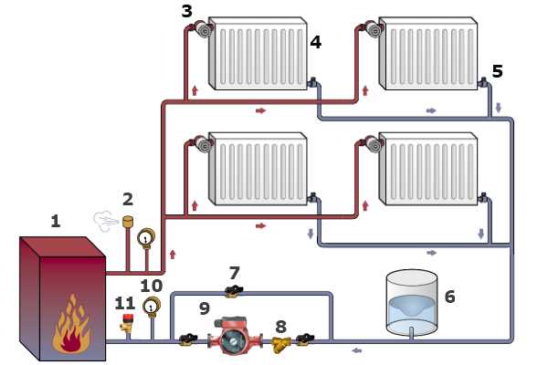 Π‘Ρ Π΅ΠΌΠ° ΡΠΈΡΡΠ΅ΠΌΡ ΠΎΡΠΎΠΏΠ»Π΅Π½ΠΈΡ Ρ ΡΠ΅ΡΠΌΠΎΡΡΠ°ΡΠΈΡΠ΅ΡΠΊΠΈΠΌ ΠΎΠ±ΠΎΡΡΠ΄ΠΎΠ²Π°Π½ΠΈΠ΅ΠΌ (ΠΏΠΎΠΊΠ°Π·Π°Π½Ρ ΠΌΠ΅ΡΡΠ° ΡΡΡΠ°Π½ΠΎΠ²ΠΊΠΈ ΠΊΠ»Π°ΠΏΠ°Π½ΠΎΠ²)