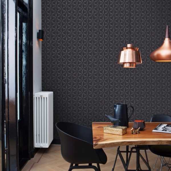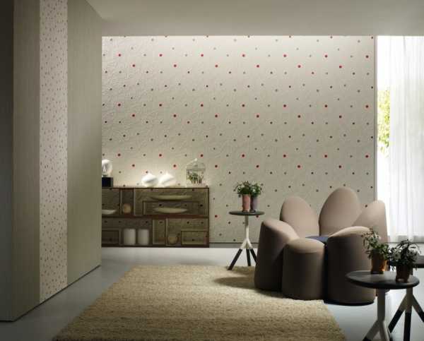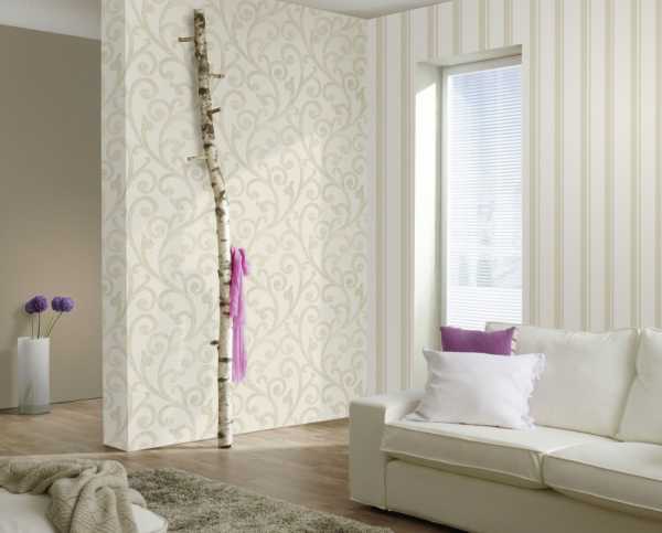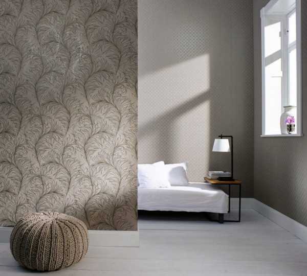 Обои с тиснением и двухслойной бумажной структурой покрывают небольшие неровности на стенах.