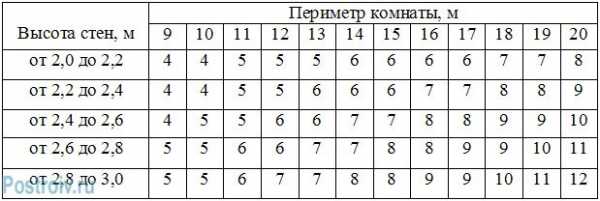 Приведены примерные расчеты, так как каждое помещение и комната в нем, могут иметь различную высоту, ширину, перепады, поэтому стоит точно и внимательно делать расчеты, учитывая возможные неровности стен и потолка.