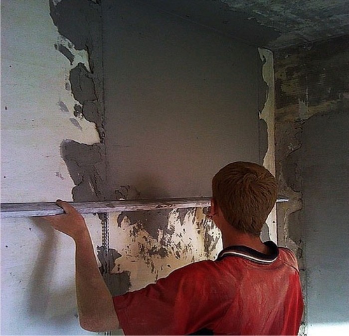 Предварительно необходимо провести подготовительные работы, направленные на очистку поверхности от различного рода загрязнений и удалить старые отделочные материалы. Этот этап важен, так как он определяет, насколько хорошо будет держаться штукатурка в дальнейшем.