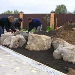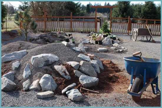 Пока грунт даёт усадку, можно составить схему дизайна, заняться определением местонахождением валунов, подобрать нужную растительность для посадки. Как сделать конструкцию своими руками на даче? Для этого следует запастись: