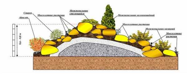 Важно! Если альпинарий задуман выше метра, нужно дополнительное устройство в виде ядра.