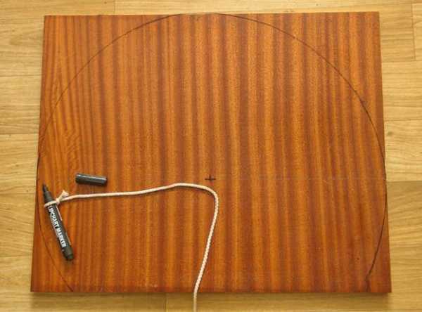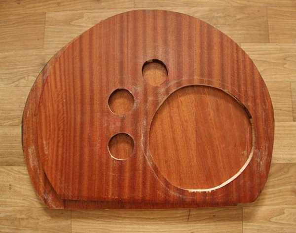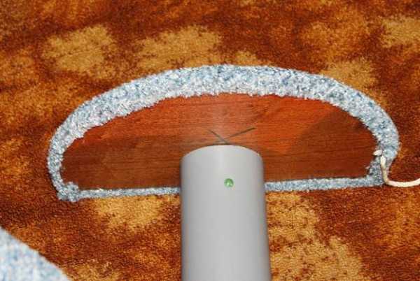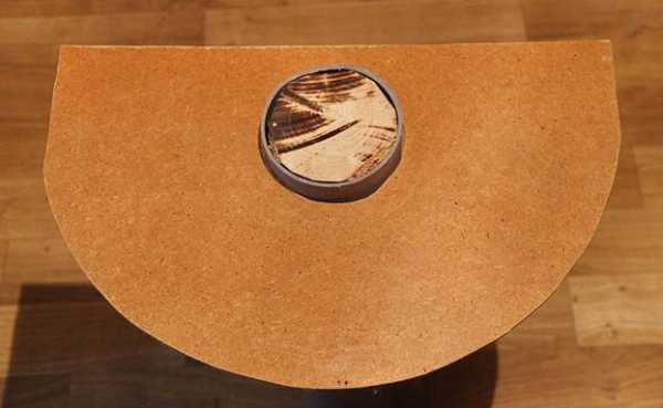 - В куске ДВП проделывается отверстие под трубу. Он будет присоединяться к основанию.