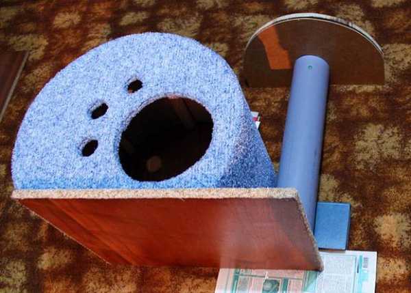 Если навыки, время, возможности и средства позволяют собрать полноценный кошачий домик, как в магазине, то можно воспользоваться данной инструкцией. Представленный вариант не занимает много места, но при этом вполне подходит для крупных котов и кошек.