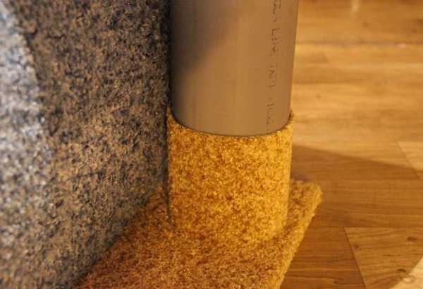 Основой когтеточки могут служить разнообразные трубы. Например, это может быть кусок дерева, картонный или пластиковый элемент. При этом нужны два бруска, чтобы строение было устойчивым.