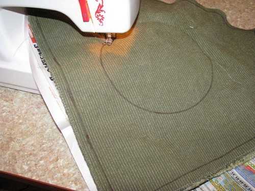 5. Скалываем ткань, прошиваем швейной машинкой по окружности, подложив под поролон кусочек газеты.