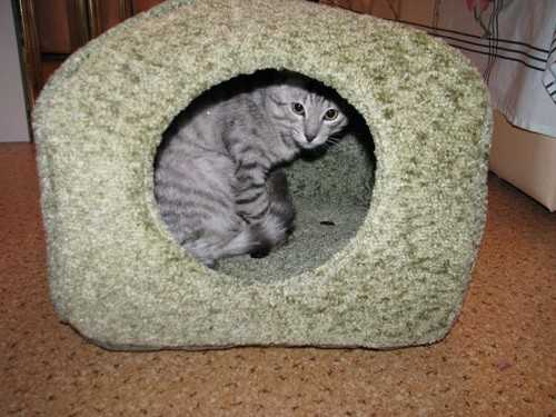 Маленькие котята, и некоторые взрослые кошки очень любят прятаться в разные труднодоступные места – например, в шкафы, под кресла и диваны. А если вы покажете своему любимцу, что у него есть уютный домик, он будет прятаться именно там и вам не придется всякий раз исследовать весь дом в поисках любимца.