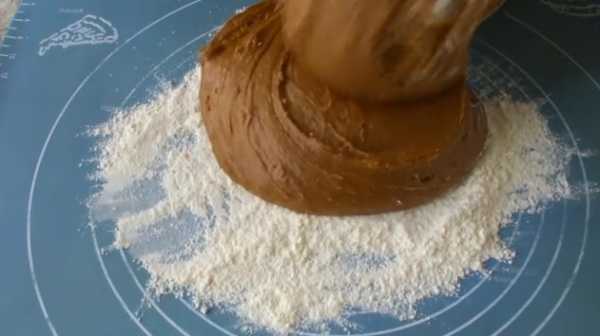 8. Когда орудовать лопаткой становится очень трудно рабочую поверхность присыпьте мукой и замесите тесто.