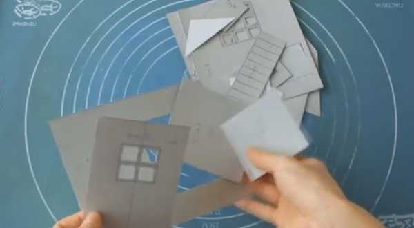 3. Затем возьмите детали, вырежьте их из картона. Вы можете на свой вкус взять абсолютно любой вид домика. Хоть сделать замок.