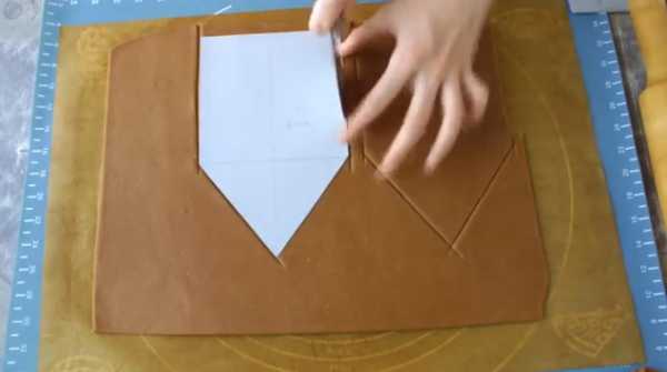 6. Далее из макета крыши отрежьте одну половинку, а из другой сделайте боковую стену, помните о том, что пряничные стены они ведь толще, чем лист бумаги и поэтому делайте прозапас. Все это лучше все проектировать, вот так, как показано на фото.