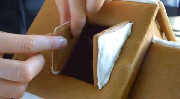 3. Приклейте части крыши и заполните все отверстия, которые остались глазурью.