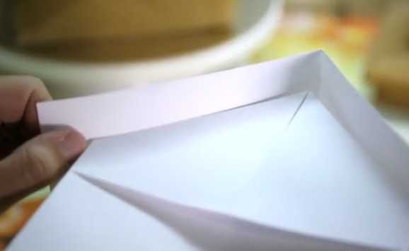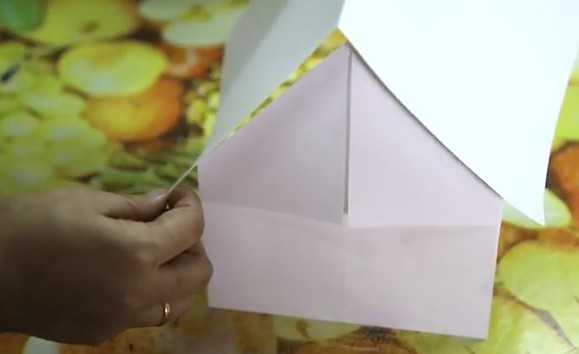 2. Второй лист сгибаем, как на самолетик, все мы когда-то в детстве их делали. Это будет стена, она получится немного больше, чем крыша, поэтому немножечко удалите лишнее.