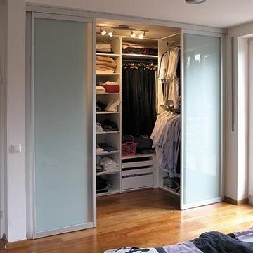 1) В темном тесном помещении для фасада шкафа-купе используйте полупрозрачные стеклянные дверцы.