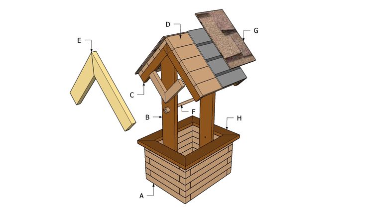 Перед тем, как построить колодец своими руками, необходимо разобраться с его конструктивными особенностями. Итак, составляющими элементами колодца являются: