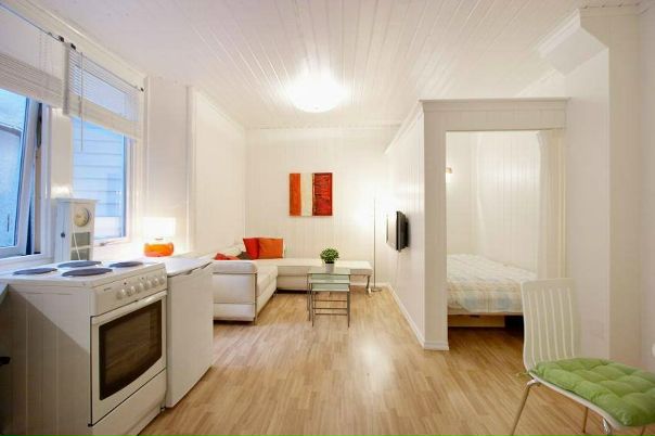 В случае принятия решения переделать кухню в помещение для сна совершенно необязательно забирать у кухни все ее пространство. Можно просто в значительной степени ее уменьшить, отделив немного места для приготовления пищи. А из оставшегося пространства можно сделать не только спальню, но еще и гостиную.