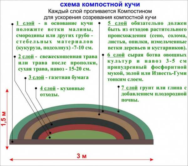 - сухие отходы должны чередоваться со свежими, твердые – с мягкими, коричневые – с зелеными;
