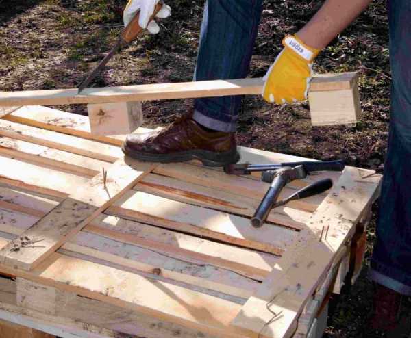 - во всех углах монтируются опоры, выполненные из труб или досок;