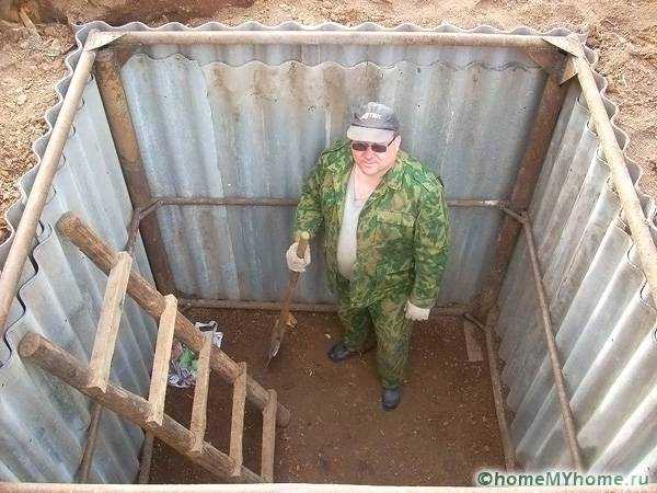 - по границам ямы сооружают опалубку так, чтобы бетонные стены примерно на 1 м выступали над уровнем земли;
