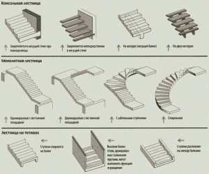 Основные конструкции лестниц.- Теперь необходимо определить длину конструкции. В данном случае ориентироваться необходимо на высоту потолка, учитывая при этом угол наклона в 45 градусов. К примеру, высота потолка составляет 3 метра, тогда длина лестницы должна быть 3,5 м.