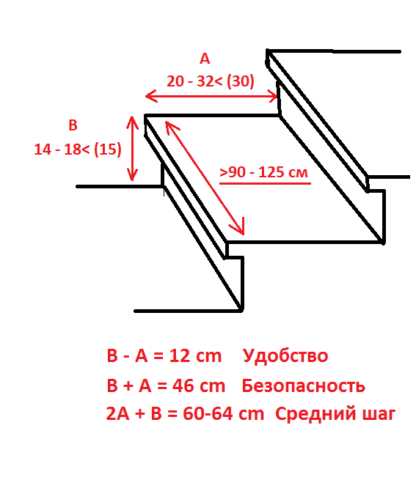 - Высота ступени должна быть не более 20 см, а ширина – не менее 25 см