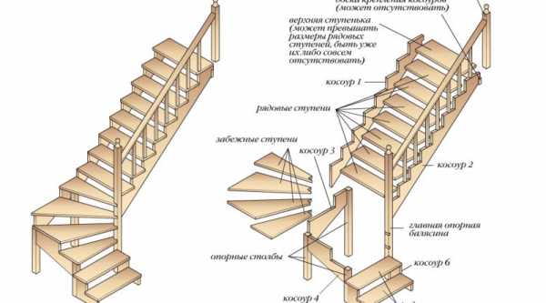 Схема поворотной лестницы на косоурах с забежными ступенями