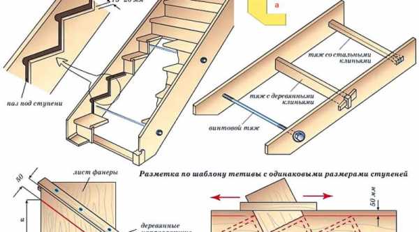 После того, как тетива установлена и временно прихвачена шурупами (в невидимых местах), можно начисто размечать ступени.