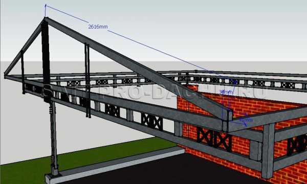 Детали конструкции навеса из профильной трубы с односкатной крышей