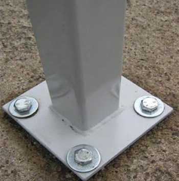 Использование анкерных болтов позволяет выровнять стойку при монтаже регулировкой затяжки гаек и подкладкой металлических пластин различной толщины