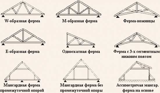 Форма ферм зависит от назначения и условий эксплуатации навеса. Каждая из них обладает преимуществами и недостатками. К популярным относятся: