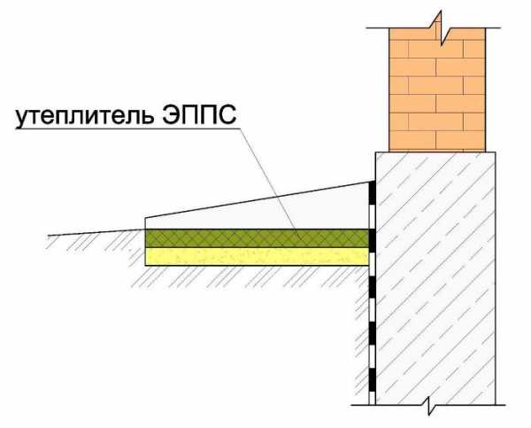 Такой вариант отмостки является единственным, который позволяет теплоизолировать фундамент.