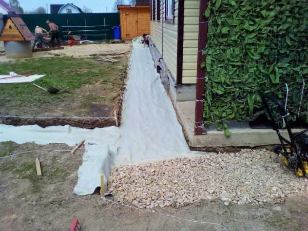 Вот так, вода уходит хорошо, фундамент не промерзает и нет никаких забот типа трещин на отмостке.