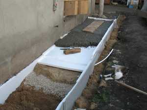 Если отмостку из бетона сооружают для зданий с неотапливаемым подвальным помещением или цокольным этажом либо здание находится на пучинистом грунте, то придется позаботиться о проведении тепло- и гидроизоляции.