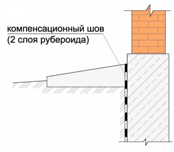Назначение компенсационного шва заключается в том, что защитить фундамент от давления отмостки, которое вызвано движением грунта. Если этим шагом пренебречь, то можно столкнуться с тем, что на фундаменте и стенах появятся трещины.