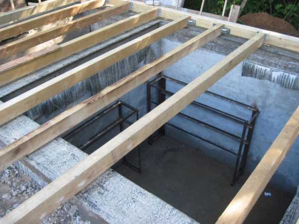 Опалубка выставляется по всему периметру где будет проводиться заливка. Нужно помнить о том что нужно оставлять место под дверной проем входа в погреб.