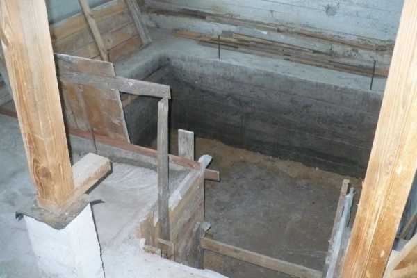 Их применение гарантирует ровную поверхность по всей квадратуре. После заливки бетоном, полу погреба дают выстояться примерно 7-10 дней до приобретения прочности.